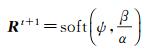 式中,ψ=D′t+1-D;soft(b, θ)代表软阈值函数,采用下式计算