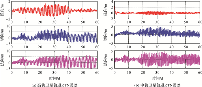 试验表明,在长期运行周期内,高轨卫星的轨道径向、切向和法向的误差可以控制在2、10和10 m以内,中轨卫星的轨道径向、切向和法向的误差可以控制2、5和5 m以内,中轨卫星的轨道精度较优。验证了系统星地星间联合定轨的有效性,以及基于部分星地链路与星间链路支持系统长期精密定轨的可行性。