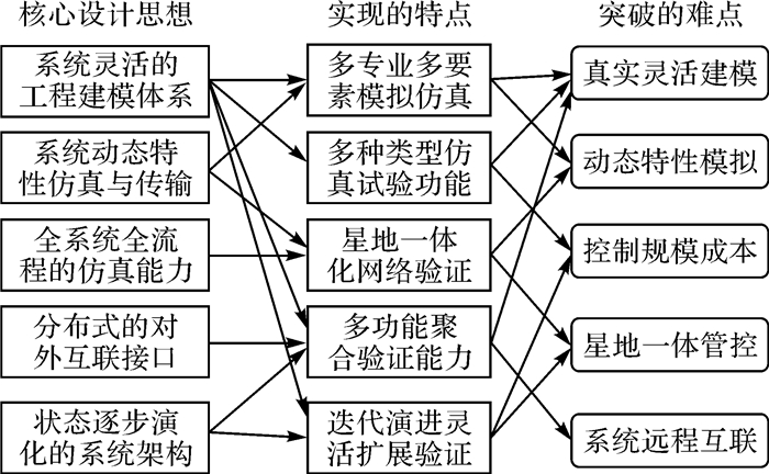 (3) 全系统全流程的仿真能力。重点对系统间真实接口关系与运行流程全状态等效与指挥调度,突破星地一体化网络验证等创新,解决系统星地一体管控等难点。
