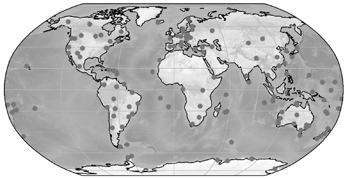 | 图 1 MGEX测站分布 Fig. 1 Distribution of MGEX stations |