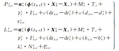 式中,Pi, rs和Li, rs分别表示以m为单位的伪距观测量和载波观测量;ρrs表示站星几何距离;Mrs表示对流层投影系数;Tr表示天顶对流层湿延迟;I1, rs表示f1的电离层延迟一阶项;γis表示第i频率与fi相关的电离层延迟放大因子,可以表示为fi2/f12;c为光速;dti, r和dtis分别表示接收机和卫星钟差;di, r和dis分别表示接收机和卫星端的伪距硬件延迟;bi, r和bis分别表示接收机和卫星端的相位硬件延迟;λis为第i频率的波长;Ni, rs表示以周为单位的整周模糊度;εi, rs和ξi, rs则是伪距观测量和载波观测量的信号噪声。