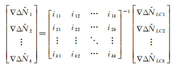 式中,频率数k≥3,c表示真空中的光速;i1、i2至ik表示任意整数系数;f1、f2至fk表示频率,且本文满足f1>f2>…>fk;∇ΔN1、∇ΔN2至∇ΔNk表示相应的双差整周模糊度,因此保留整数特性。相应的多频双差伪距和相位线性组合观测值可表示为
