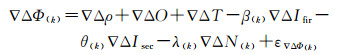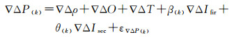 式中,∇Δρ表示双差卫地距;∇ΔO表示双差轨道误差;∇ΔT表示双差对流层延迟;∇ΔIfir表示频率f1对应的双差相位一阶电离层延迟;∇ΔIsec表示频率f1对应的双差相位二阶电离层延迟;ε∇ΔP(k)和ε∇ΔΦ(k)分别表示∇ΔP(k)和∇ΔΦ(k)的观测值噪声。此外,β(k)和θ(k)分别表示一阶和二阶电离层延迟对应的尺度因子
