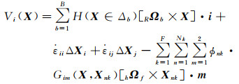 式中,X为GPS测站的位置;Vi(X)为测站X的速度;B为块体数目;Δb为b块体模型区域的子集(如果点X在块体b范围内H=1,否则H=0);i为i方向速度单位矢量(x/y/z);RΩb为块体b相对于参考框架的欧拉极;