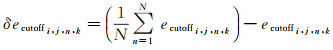 在仿真试验中,反射面粗糙度变化是影响截止高度角的唯一因素。然而,在实际观测中,截止高度角与许多因素有关,其中包括粗糙度、反射率因子等反射面特性,也包括信号解调方式、信号频率、信号带宽等信号特性[24]。为了提高反演精度,需要保证粗糙度是影响截止高度角变化的唯一因素。由于GPS卫星的周期近似为1 d(11 h 58 min),因此,同一卫星每天同一轨迹被接收机捕获的同一信号,理论上具有相同的反射区及相同的解调方式、信号频率、信号带宽;为了实现唯一变量影响,需要计算同一卫星同一信号同一轨迹的截止高度角的变化。同时,由于风速为1 m/s时的截止高度角在实际中并不容易获得,因此,选取同一卫星同一信号同一轨迹的截止高度角的均值作为基准,进而计算δecutoff。将第i个GPS卫星、第j个GPS信号,在第n天、第k轨迹获得的截止高度角记为ecutoffi, j, n, k,则定义该截止高度角对应第i个GPS卫星、第j个GPS信号、第k轨迹的δecutoffi, j, n, k为