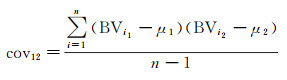 式中,cov12为双时相影像对应邻域窗口内所有波段亮度值的协方差;BVi1、BVi2分别为前、后时相对应邻域窗口内所有波段第i个像元的亮度值;μ1、μ2分别为前、后时相对应邻域窗口内所有波段亮度值的平均值;n为邻域窗口内所有波段的像元总数;s1、s2分别为前、后时相对应邻域窗口内所有波段亮度值的标准差。