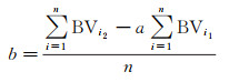 邻域相关影像是利用双时相影像间局部邻域的光谱属性得到3个表示上下文信息的特征影像,即相关系数影像,斜率影像,截距影像。它们用于变化检测的基本原理为:若双时相影像对应邻域范围内的地物没有发生变化,则该区域的光谱值倾向于线性相关,即相关系数较大、趋近于1,斜率趋近于1,截距趋近于0;若对应邻域范围内的地物发生了变化,则该区域的光谱值倾向于线性无关,相关系数较小、偏离1,斜率偏离1,截距偏离0。为获取邻域相关影像,在双时相影像对应像元位置开辟一个3×3的动态窗口,然后采用式(1)-式(4)分别计算对应窗口邻域的相关系数r,斜率a,截距b,并将值赋给窗口中心像元位置,构建相关系数影像,斜率影像,截距影像,统称NCI[15]。