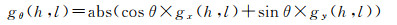 考虑到通常情况下,双时相影像间光谱和灰度信息差异较大,本文基于方向梯度通道特征(channel features of orientated gradients, CFOG)[20]构建结构特征,以抵抗影像间的辐射差异和灰度差异对检测结果的影响。整个构建过程主要包括以下3个步骤:①利用多方向梯度信息构建方向梯度通道;②对方向梯度通道进行特征通道卷积形成CFOG;③对CFOG进行通道叠加形成结构特征。其中,方向梯度通道由m层构成,每层的方向梯度通道gθ(θ为该层通道所在的划分方向)在点(h, l)处的梯度幅值gθ(h, l)是通过点(h, l)处的水平方向梯度幅值gx(h, l)和垂直方向的梯度幅值gy(h, l)根据式(5)[20]计算得到