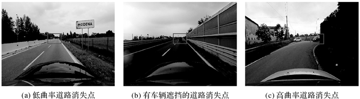 | 图 4 道路消失点提取示例 Fig. 4 Examples of vanishing point detection |