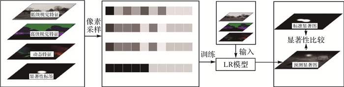 场景的视觉显著性是多特征共同作用的结果,本文采用了机器学习中的逻辑回归(LR)模型[44]计算场景显著性,处理流程如下。