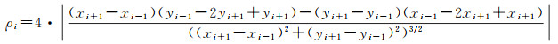 式中,ρi为第i个点的曲率;(xi+1,yi+1)为前一个点的坐标;(xi-1,yi-1)为后一个点的坐标。