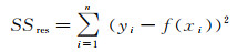 式中,SSres为残差平方和;n为测试样本数;f为训练模型;xi为测试像素特征;yi为像素的显著性。