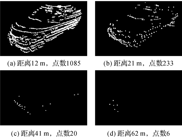 | 图 1 不同距离上激光雷达的点云数量 Fig. 1 Point number of LiDAR point cloud at different distances |