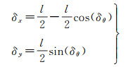 式中,l为目标包围盒的长度;δx和δy分别为两个方向上的位置误差,同时假设目标真实框与目标检测框的旋转中心为目标坐标系的原点。