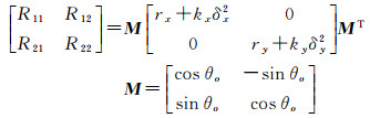 式中,R11等4个参数为测量噪声协方差矩阵Ro左上角的两维方阵。图 9是两个不同朝向误差目标对应的位置噪声协方差示意图,可以看出对于不同朝向误差的目标,本文所提出的方法可以对其位置噪声进行实时估计,更加符合真实情况。