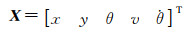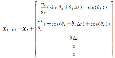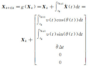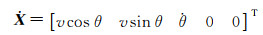为了提升目标跟踪的效果,引入车辆的运动学模型来进行预测。本文采用恒定转向速率和速度(constant turn rate and velocity,CTRV)模型,其输入量为车辆的线速度v和角速度