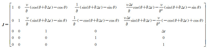 式中,J为上述状态转移方程的雅可比矩阵;P为状态协方差矩阵,其初始值一般由人为指定;Q为过程噪声协方差矩阵。Q的计算方式为