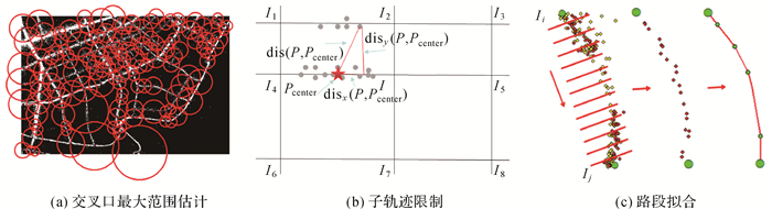 | 图 8 子轨迹提取及路段拟合 Fig. 8 Sub-trajectory extraction and road segment fitting |