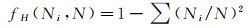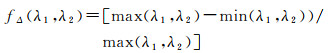 1.1.4 方向多样性fH与路段相比,交叉口的车辆行驶方向更加多样化。给定搜索半径h,每隔30°对0°~360°进行划分,计算每个方向间隔内轨迹点数Ni占落入搜索半径h内总轨迹点数N的比例,利用辛普森多样性指数(式(1))即可统计路网不同区域轨迹点方向多样性