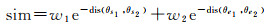 式中,dis(θs1, θs2)、dis(θe1, θe2)为起始点及终止点头方向欧氏距离。为了更好地度量角度之间的距离,本文将方向进行了极坐标转换[27]。w1和w2与起始点之间、终止点之间相似度有关,如果e-dis(θs1, θs2)和e-dis(θe1, θe2)的值都大于0.5,则w1、w2均设置为0.5;否则,如果e-dis(θs1, θs2)>e-dis(θe1, θe2),设置w1=0.01、w2=0.99,如果e-dis(θs1, θs2) < e-dis(θe1, θe2),设置w1=0.99、w2=0.01。