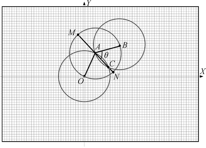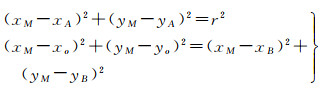 如图 10,已知点O、点A和点B的空间坐标分别为(xO, yO)、(xA, yA)、(xB, yB),因为点M位于圆环A上,且点M到点O和点B的距离相等,即点M满足