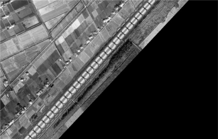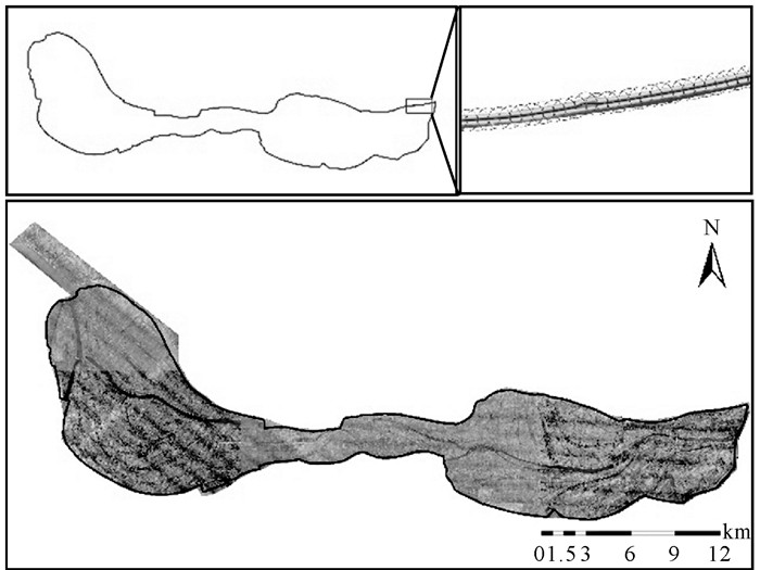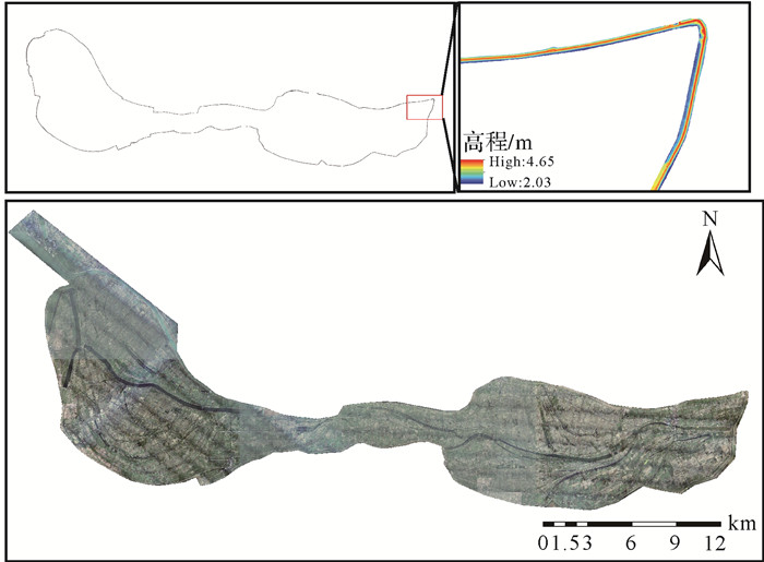 | 图 2 蓄滞洪区影像及堤防DTM数据 Fig. 2 Image of flood detention basin and DTM data of levee |
