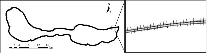 基于上述求断面线端点坐标式(4),得到的堤防断面线如图 15所示,研究区堤防共生成断面2401个。