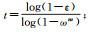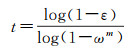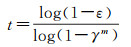 传统RANSAC算法提出一种概率估计的方法计算迭代次数,其假设在真实误差容忍阈值αt范围内,迭代次数为t,则期望E(t)=γ-m,其中,m为最小采样样本。同时,令容忍失败率为ε时,通过式(3)对迭代次数t进行了保守估计