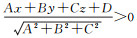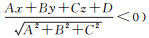 式中,A、B、C、D为平面参数;(x, y, z)为空间点坐标。设di表示第i点到平面的符号距离(“+”表示在平面沿法向方向的一侧,即