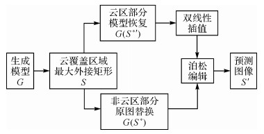 | 图 4 训练完毕后去云操作流程 Fig. 4 Cloud removal framework with trained generator |