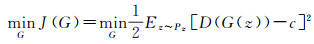 令c=0,生成网络的重建损失J(G)1为最小二乘损失,如式(5)所示