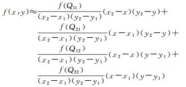 式中,Q11、Q21、Q12、Q22分别为像点(x, y)左下、右下、左上、右上相邻的4个像点。