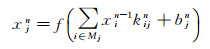 式中,xjn表示第n层的第j个神经元的输出;xin-1表示第n-1层的第i个神经元的输出;Mj表示输出特征映射集合;kijn表示卷积核;bjn表示偏置项;f()表示激活函数。