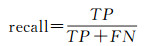 衡量结果的精确性;查全率表示正样本中识别为正样本的概率,衡量结果的完整性,如式(9)所示