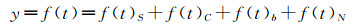 1 波形特征及信号模型构建 1.1 机载激光测深波形特征机载激光回波信号由水面反射回波、水体散射回波、水底反射回波以及噪声4部分组成[23-24],因此机载激光回波信号可表示为4部分信号的叠加。用式(1)表示为