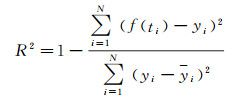 式中,f(ti)表示拟合信号;yi去噪信号;yi表示去噪信号均值。R2越接近1,说明拟合效果越好。