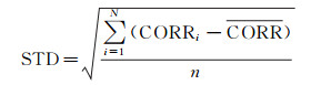 式中,CORR表示每一段段波形相关系数平均值;n表示试验波形数目。相关系数CORR的表达式为