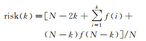 式中,N为总数据量;k表示第k个元素。因此将风险最小的元素作为无偏风险估计阈值。