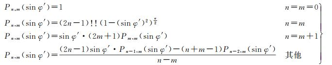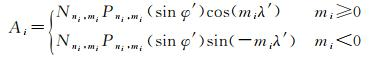式中,φ′及λ′分别表示日固系下电离层穿刺点处的地磁纬度和地磁经度,单位为rad;ni及mi(i=1~9)分别表示第i个播发参数对应的球谐函数阶次;Nni, mi表示正则化函数,计算公式见(4)(式中m=0时,δ0, m的值为1;m > 0时,δ0, m的值为0);Pni, mi表示标准勒让德函数,计算公式见式(5)(式中n、m均取绝对值)。