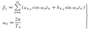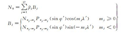 式中,βj表示BDGIM模型的非播发参数,由一系列预报系数计算得到,其计算公式见式(7);nj与mj分别表示第j个非播发参数对应的球谐函数阶次;Nnj, mj表示正则化函数,Pnj, mj表示标准勒让德函数,其计算公式分别参见式(4)及式(5)