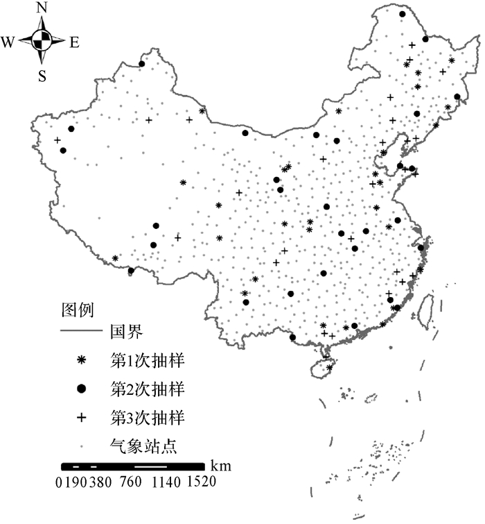 | 图 3 气象站点的分布 Fig. 3 Spatial distribution of national weather stations |