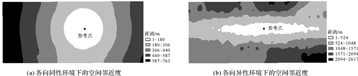 | 图 6 比较各向同性与各向异性环境下的空间邻近度 Fig. 6 Comparisons the spatial proximity between isotropic and anisotropic measures |