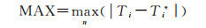 试验中涉及的各种方法参数设置如下:CIDW、FIDW以及OK参考点数量分别设置为4~20个;KAIDW与AIDW待插值点的参考点数为待插值点的一阶邻近点[2, 23];CIDW、FIDW、AIDW、KAIDW的距离衰减系数均取值为2;OK与AnisOK插值算法的变异函数采用最优化方式拟合得到块金系数、基台值、变程,其中AnisOK分别在0°、45°、90°以及135°等4个方向计算空间结构的各向异性[24];本文算法(PIDW)参数的设置见1.2.3.1节的算法流程。利用平均绝对误差(mean absolute error,MAE)、均方根误差(root mean square error,RMSE)及最大误差(MAX)3个定量指标[25]对插值精度进行评价,其中MAE、RMSE与MAX的定义见式(9)-式(11),式中Ti为测试点的真实属性值,Ti*为测试点的属性估计值,n代表测试点的个数