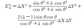 式中,Eij表示待插值点i与样本点j之间顾及各向异性的距离;λ用于调节坐标系统下不同坐标轴的距离;θ∈(0, 2π)表示原始坐标与各向异性坐标系的旋转角度;ΔX与ΔY为原始数据中待插值点与已知样本点之间的欧氏距离。