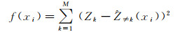 式中,xi表示第i个粒子的位置(αi, Ni, λi, θi);M为研究区域内已知样本点的个数;k代表第k个已知样本点;Zk表示第k个样本点的值。