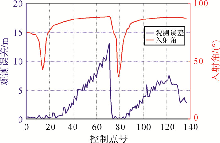 | 图 10 入射角与观测误差(取绝对值)的关系 Fig. 10 Relation ship between incident angle and observation error (take the absolute value) |