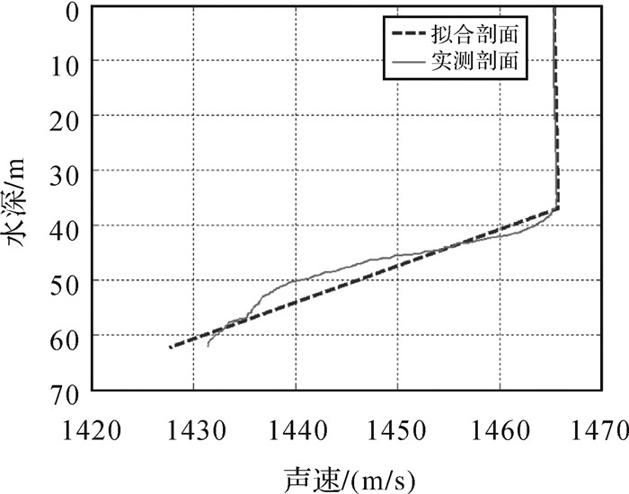 | 图 2 分段线性拟合声速剖面 Fig. 2 Piecewise linear fitting sound velocity profile |