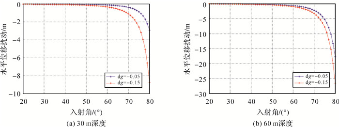 (3) 在相同深度和梯度下,水平位移扰动总是随着入射角的增大而增大。