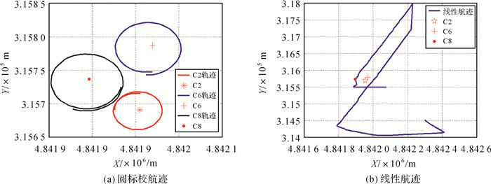 | 图 8 C2、C6、C8测量船航行轨迹及应答器平面位置 Fig. 8 C2, C6, C8 tracking ship and transponder plane location |