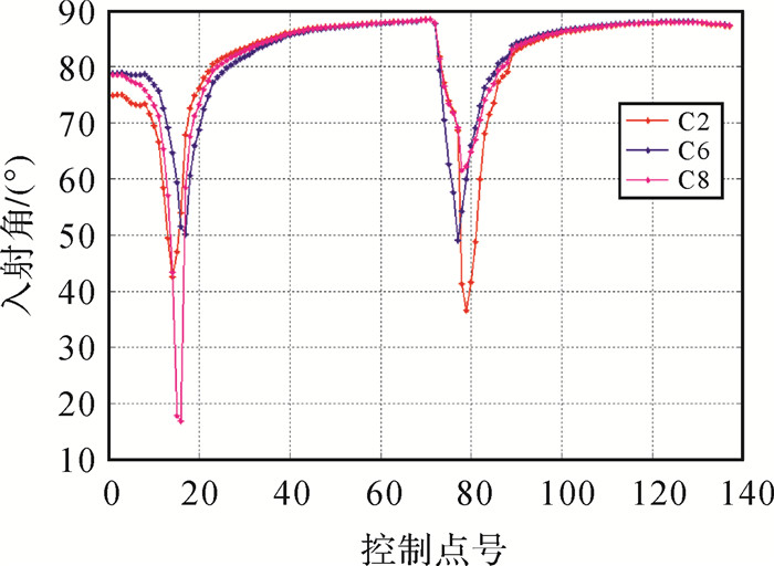 | 图 9 C2、C6、C8控制点对应的入射角 Fig. 9 C2, C6, C8 incident angle corresponding to the control point |